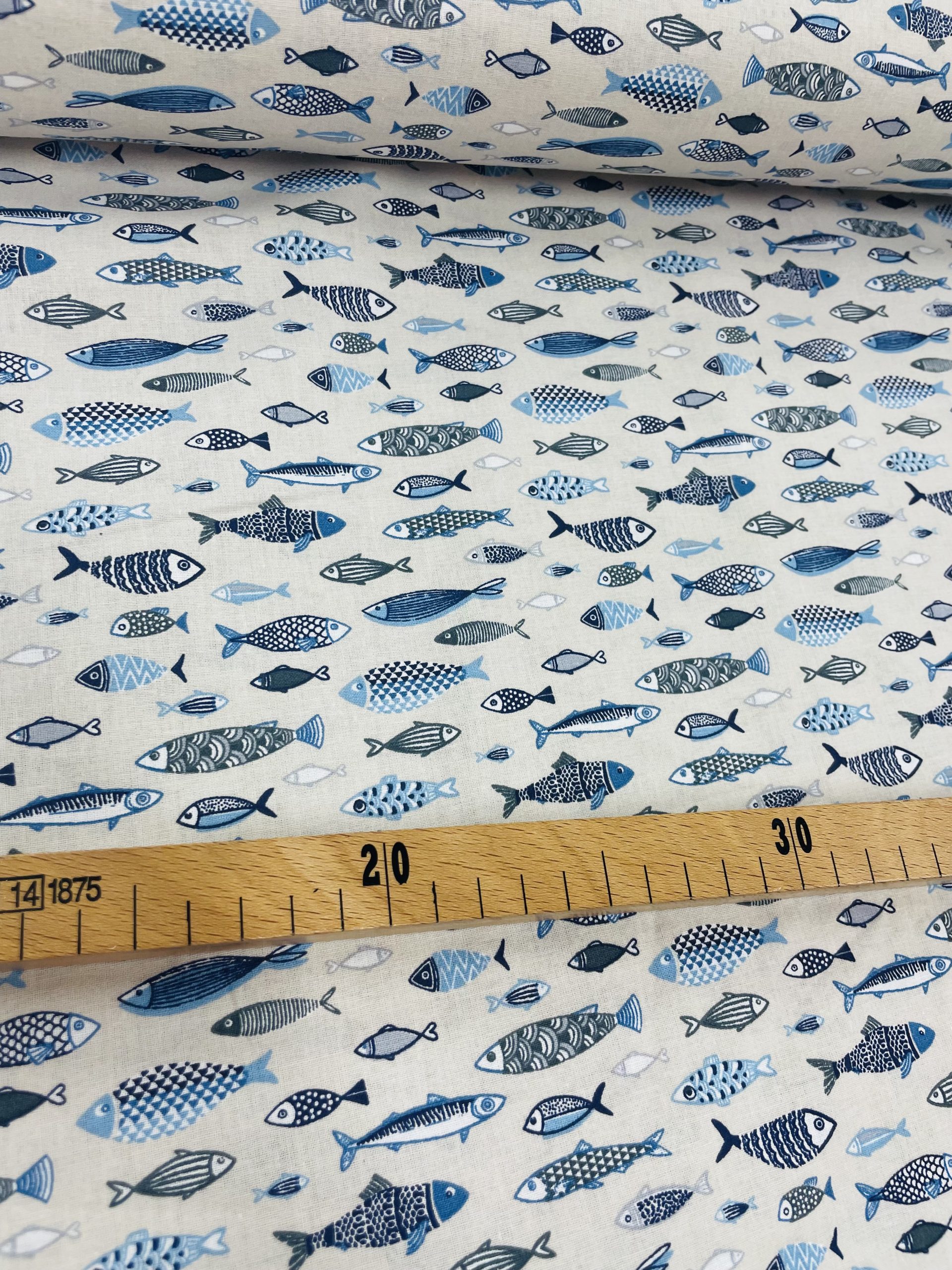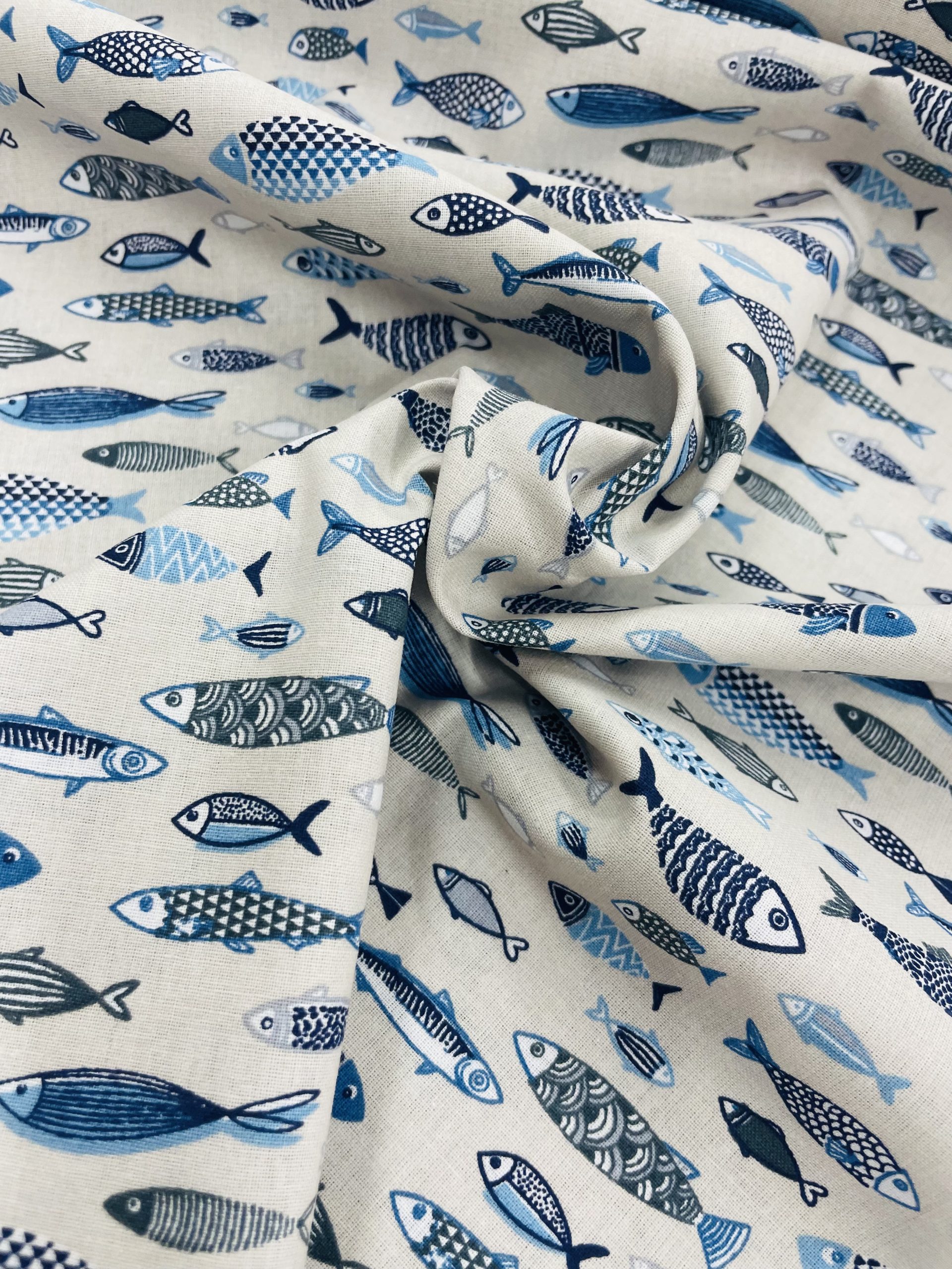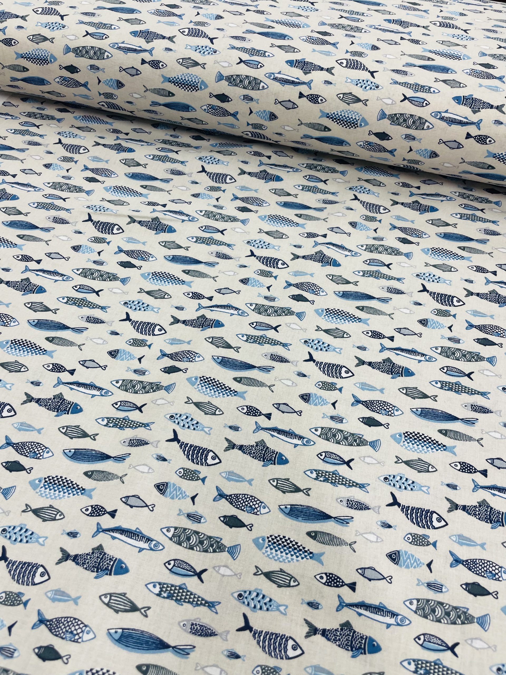 Tissu Coton x10cm POISSONS FOND LIN
