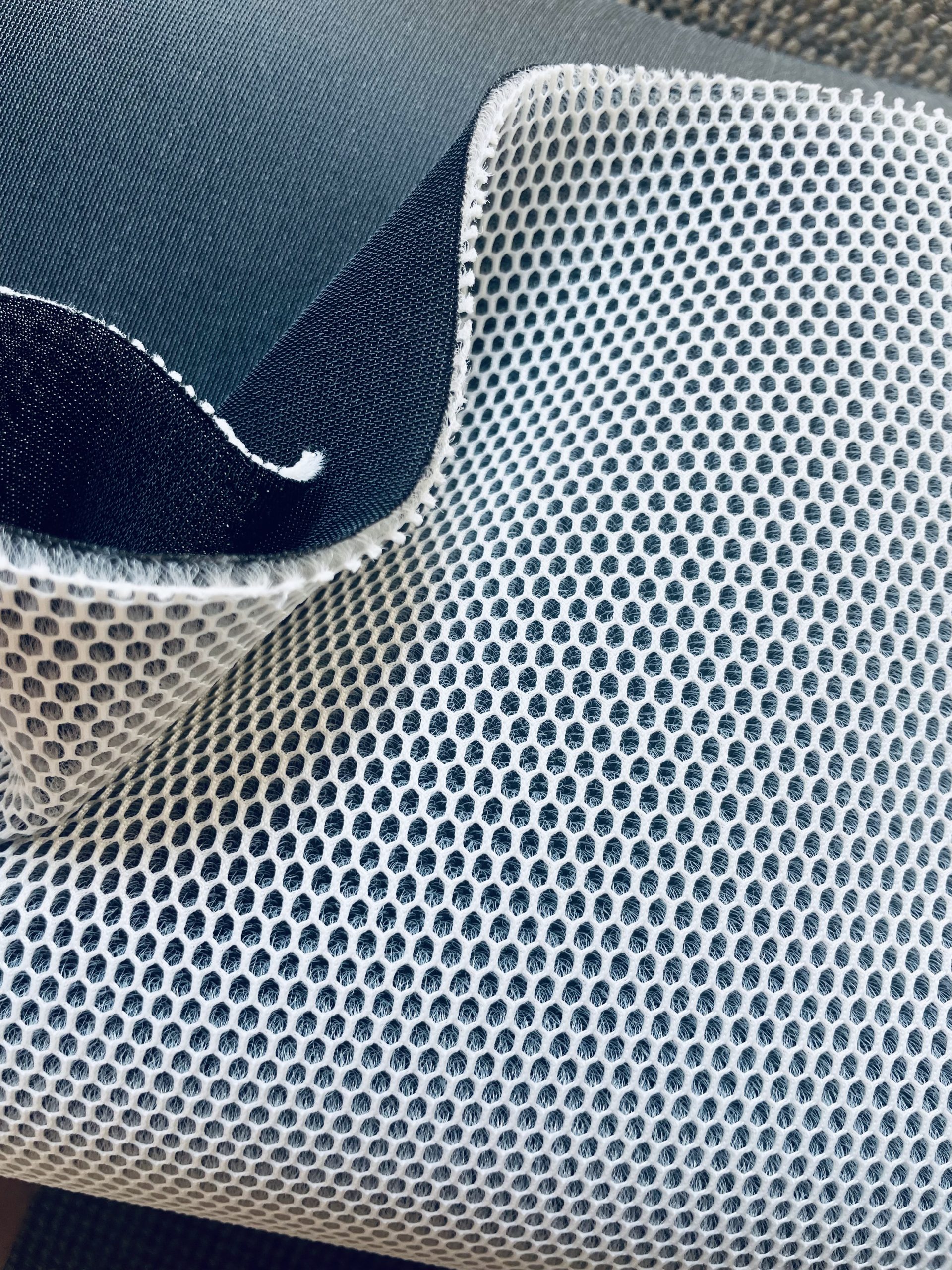VOici un étonnant Tissu respirant grâce à ses couches en polyester et à sa maille expansée.