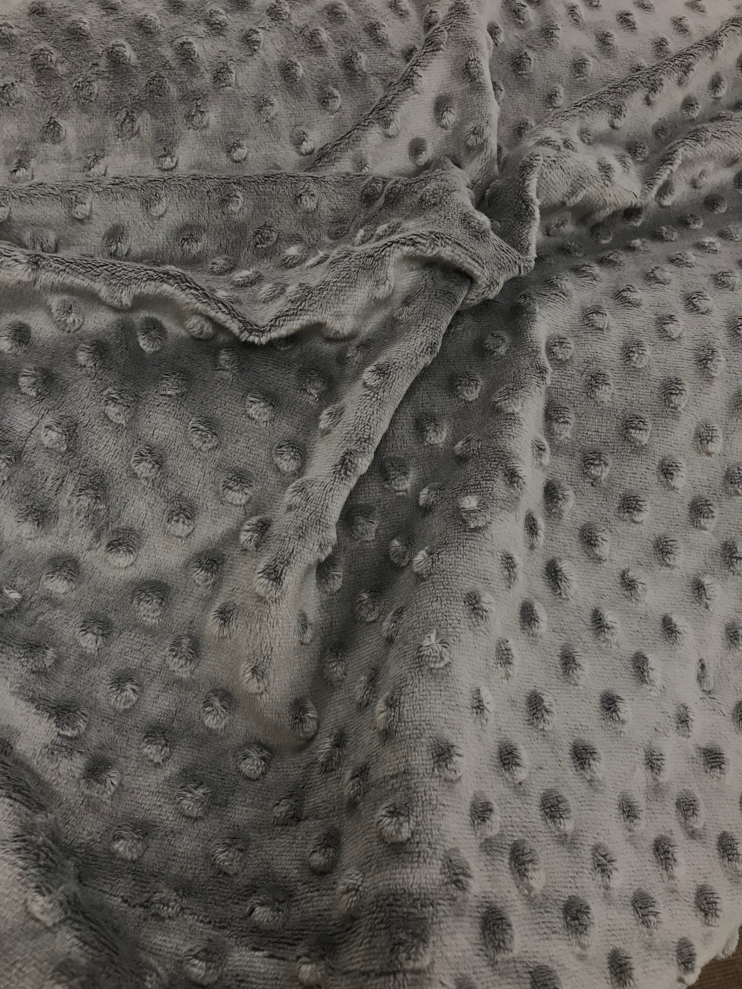Ce tissu Minky à pois GRIS ANTHRACITE va donner à toutes les couturières des envies de jolies couvertures pour bébés, de doudous rigolos et de petites tenues confortables…