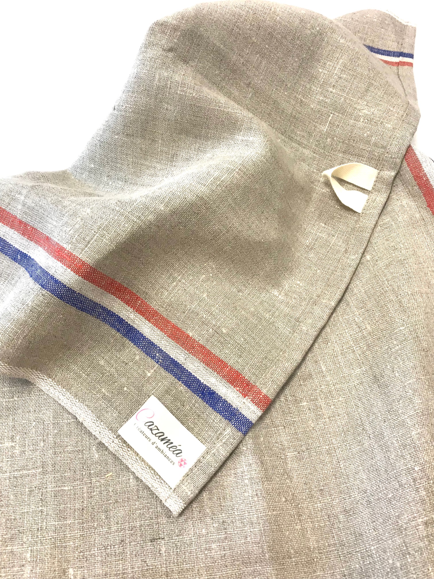 Une magnifique broderie, modèle unique et déposé, décore ce torchon rectangulaire de 70 cm de long et 45 cm de largeur, réalisé en TISSU LIN bien épais et absorbant. Le tout souligné de jolies rayures Bleu Blanc Rouge en lisières pour afficher fièrement son origine Française !