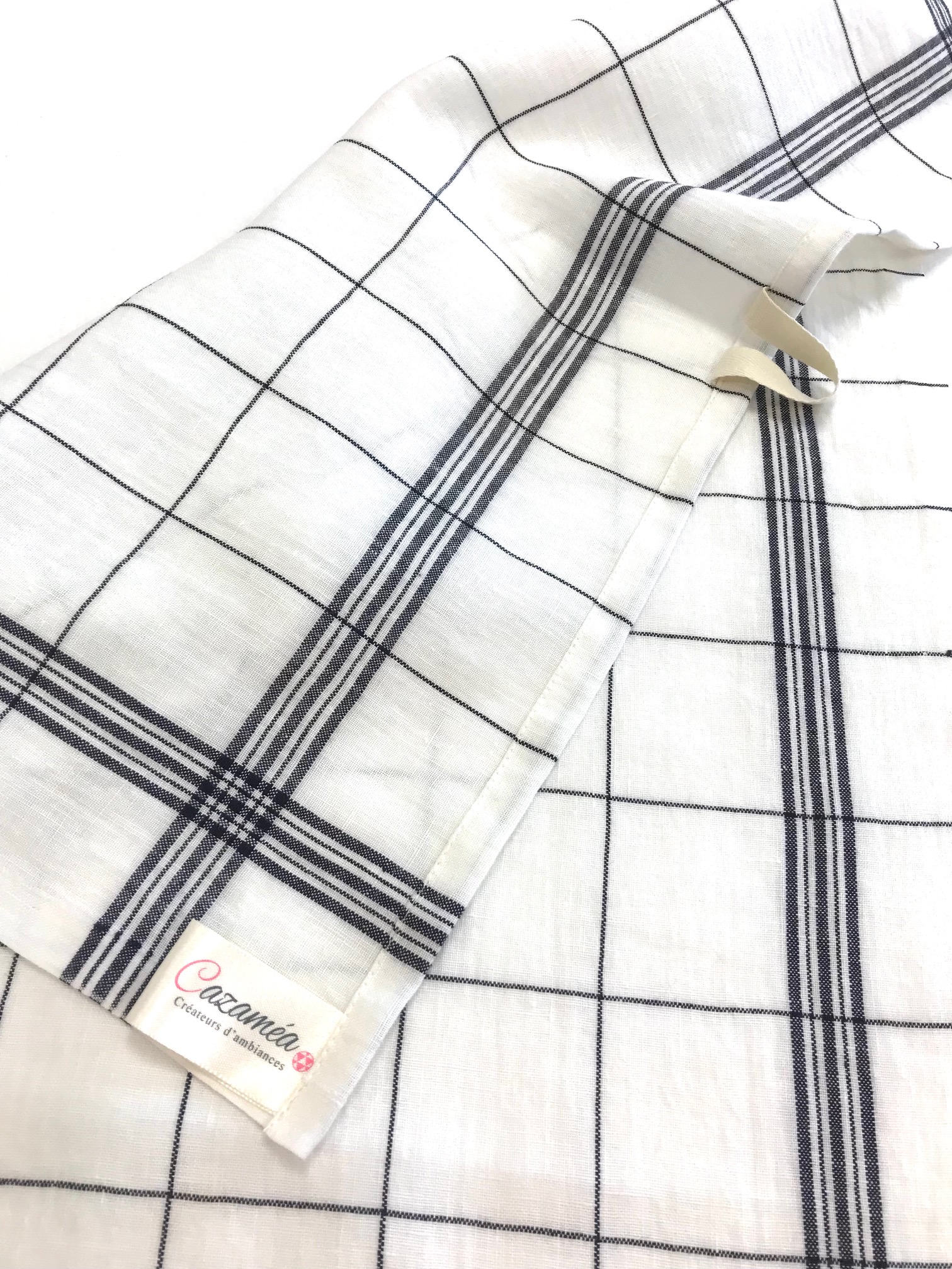 De coloris écru, Il est tissé avec un motif CARREAUX coloris NOIR , et une petite attache vous permettra de l’accrocher facilement.