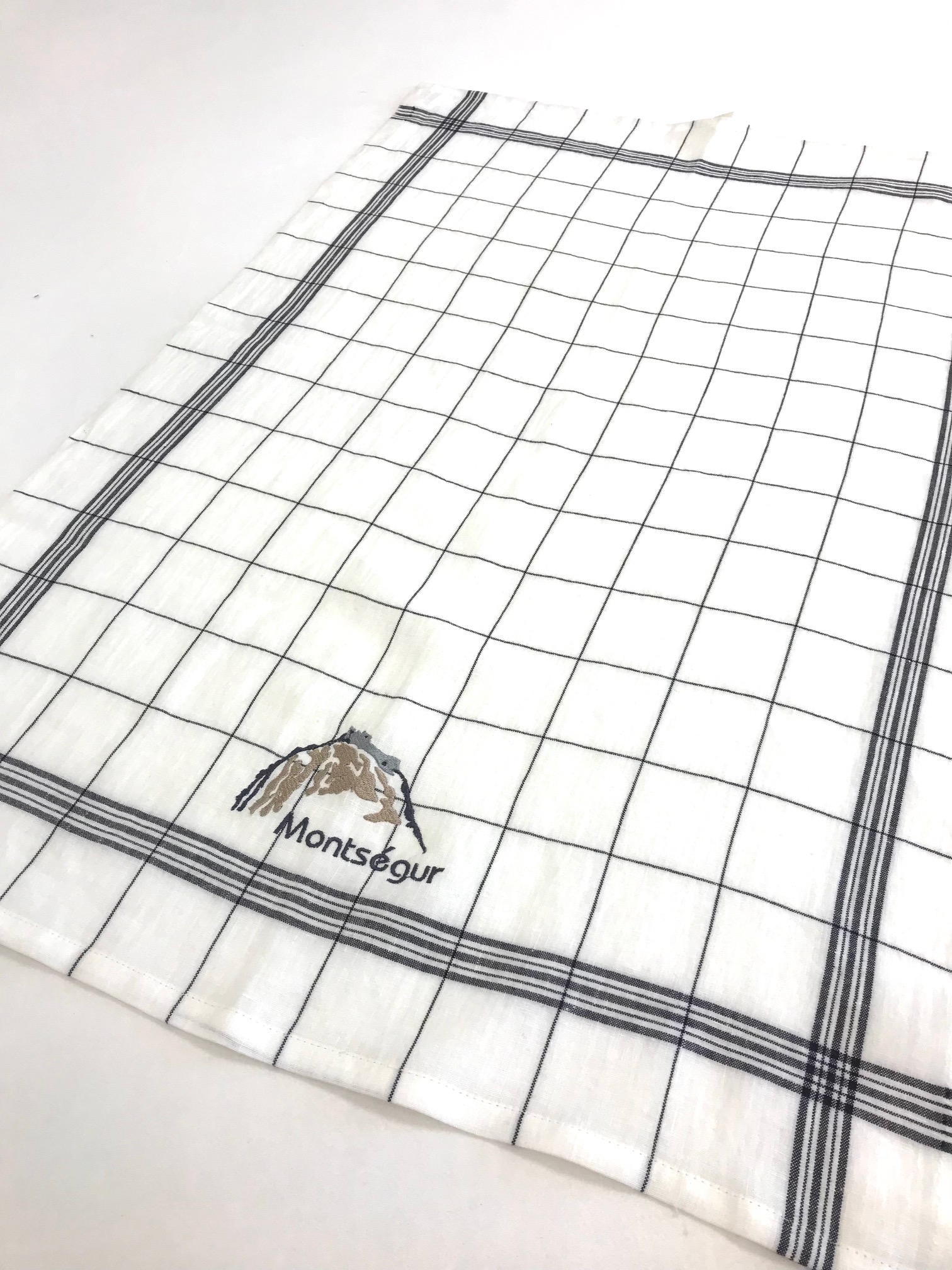 Torchon LIN Brodé MONTSEGUR Rectangulaire carreaux